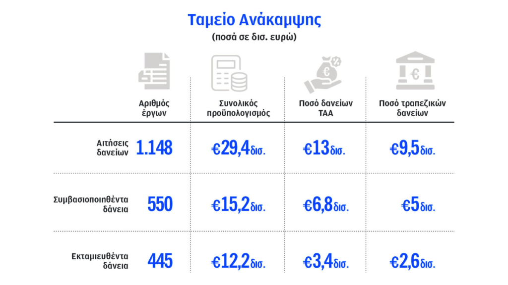 Καθώς πλησιάζει το καταληκτικό όριο της 31ης Αυγούστου 2026, η απορρόφηση των δανείων του Ταμείου Ανάκαμψης κινδυνεύει να μείνει ημιτελής. Μέχρι σήμερα έχουν εγκριθεί περίπου 550 από τις 1.148 αιτήσεις που έχουν υποβληθεί για επενδυτικά σχέδια, γεγονός που αποκαλύπτει σημαντική υστέρηση στην αξιοποίηση των διαθέσιμων πόρων. Με δεδομένο ότι η συνολική διαθέσιμη χρηματοδότηση από το Ταμείο ανέρχεται σε 12 δισ. ευρώ, η πιθανότητα να μείνουν ανεκμετάλλευτα κονδύλια είναι υψηλή.